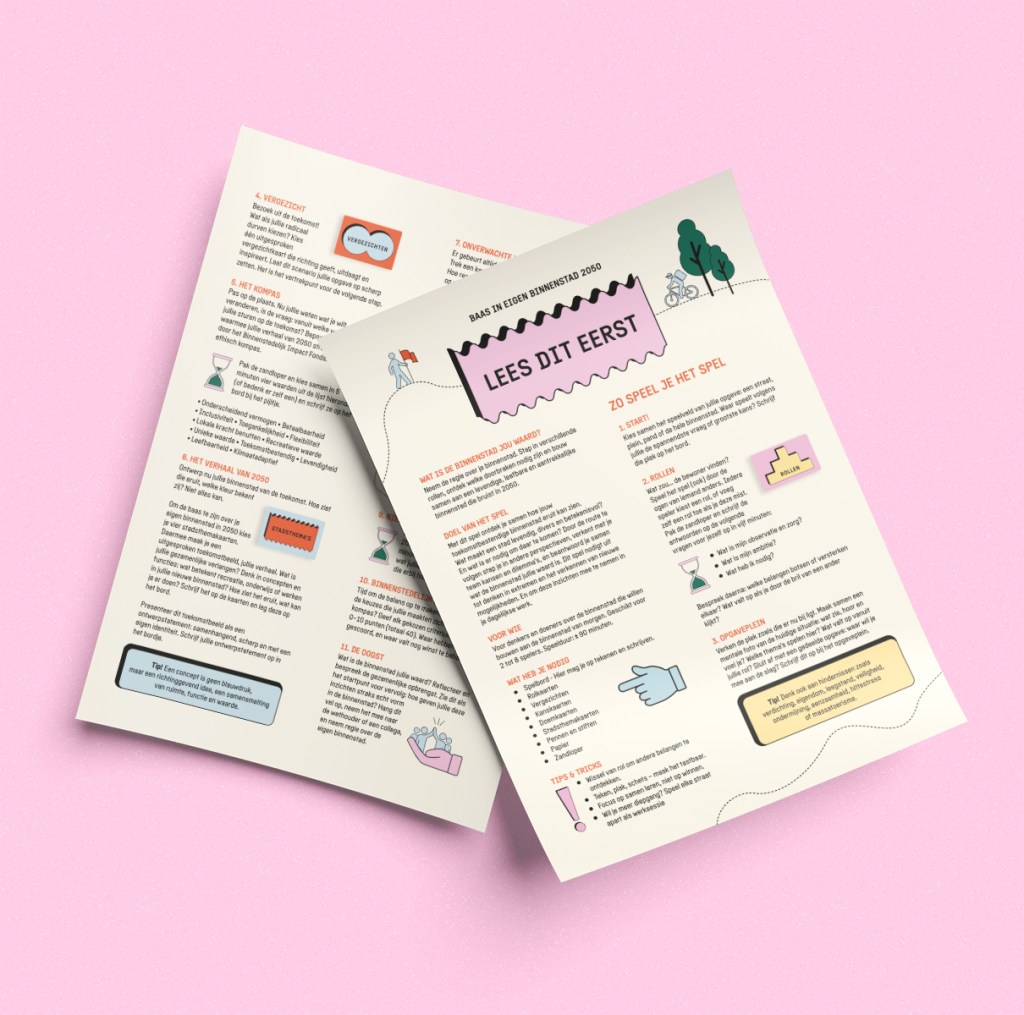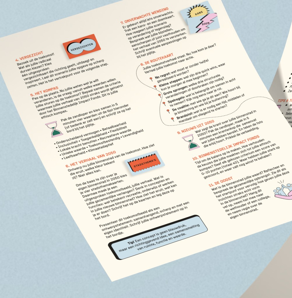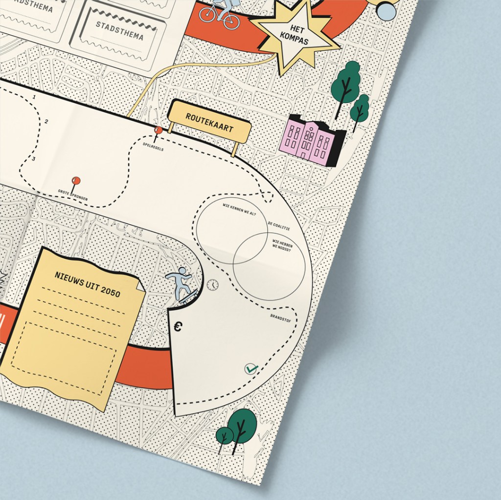Ontwerp van spel, voor professionals in stedelijke ontwikkeling. Het betrof ontwerp van spelcanvas (A1), handleiding, speelkaarten en speldoos. Ook in opdracht van: SITE Urban Development en Bureau de Hamvraag.