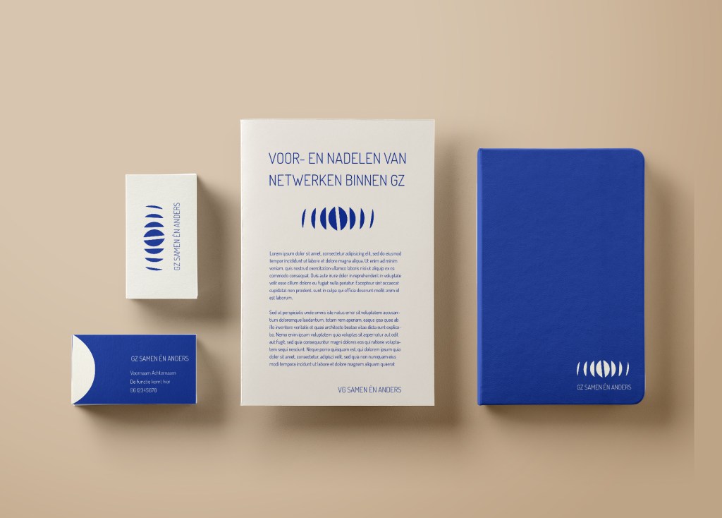 Branding: logo, huisstijl, iconen, vormen & diverse templates (Word en Powerpoint). Bovenste twee afbeeldingen zijn niet gekozen concepten, onderste twee afbeeldingen zijn uitwerkingen van het definitieve ontwerp.